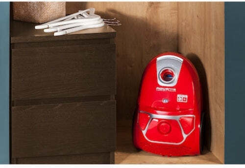 Παρά το συμπαγές σώμα της, η σκούπα διαθέτει σακούλα XL 3 λίτρων για μεγαλύτερη αυτονομία. Οι εργονομικές λαβές την κάνουν άνετη στη μεταφορά και πολύ βολική στην αποθήκευση, ακόμα και σε μικρούς χώρους.