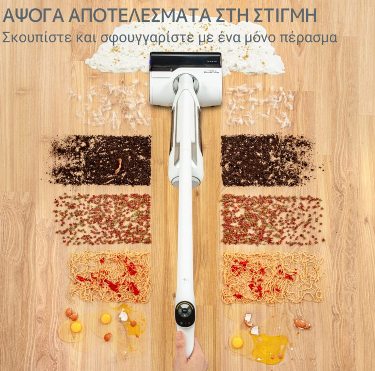 - 3 σε 1: Σκούπισμα, σφουγγάρισμα, στέγνωμα με μία κίνηση