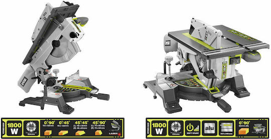 Ryobi RTMS1800G Φαλτσοπρίονο Ρεύματος Δύο Εργασιών με Ισχύ 1800W, Οδηγό Laser, Δίσκο Κοπής Διαμέτρου 254mm & Ταχύτητα Κοπής 4800rpm