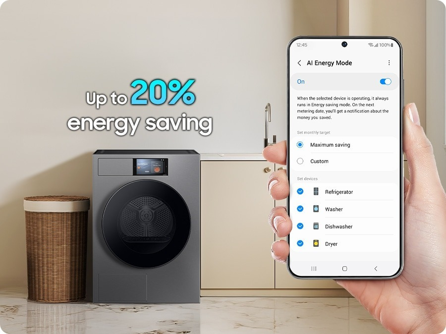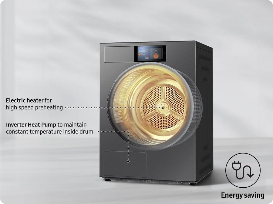 ✔ Από την κλάση Α στην ενεργειακή απόδοση, την αντλία θερμότητας και τις έξυπνες λειτουργίες AI Dry+ & AI Energy Mode, μέχρι τη φωνητική βοήθεια του Bixby και την εφαρμογή SmartThings, όλα δουλεύουν για σένα.
