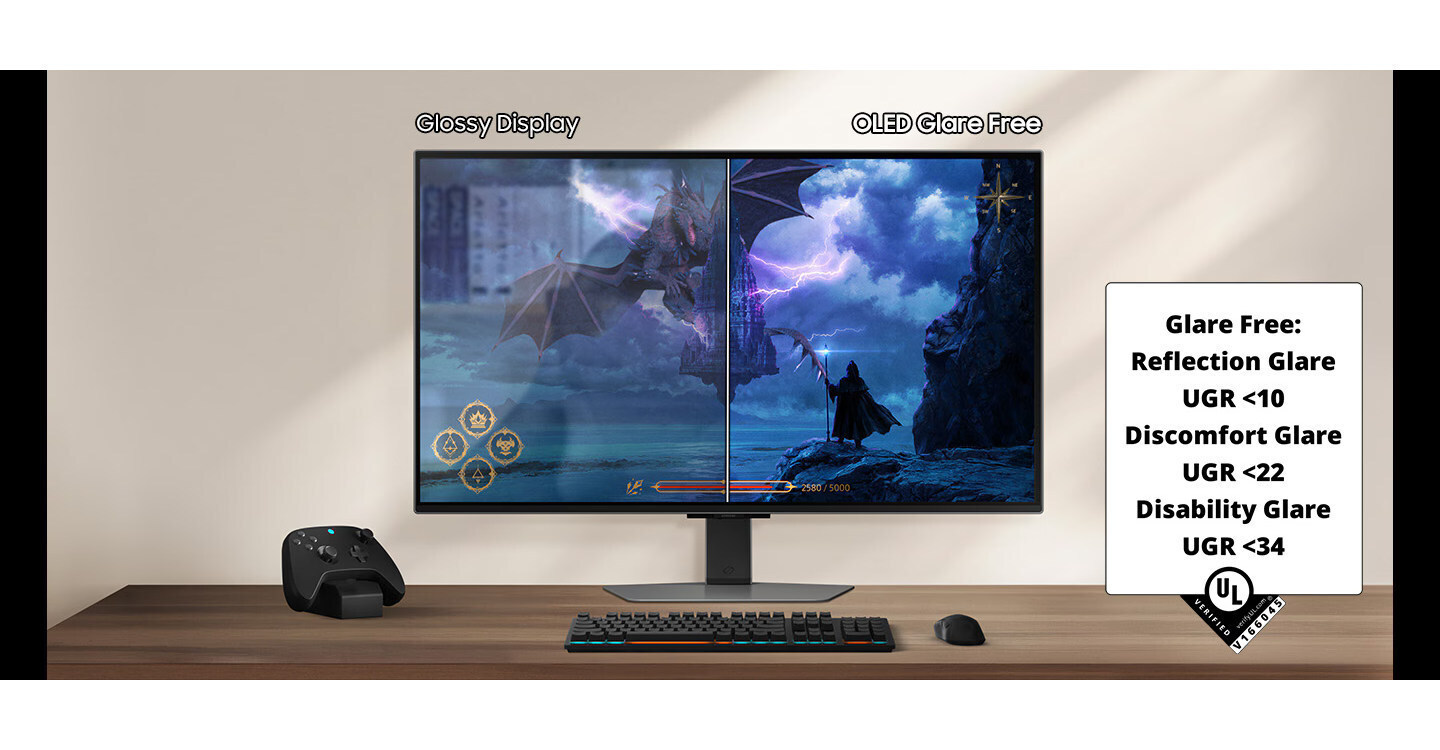 Συνεχίστε να παίζετε, χωρίς διακοπή. Η τεχνολογία Glare Free κάνει την οθόνη σας 54% λιγότερο γυαλιστερή από τη συμβατική Samsung αντιθαμβωτική μεμβράνη, διατηρώντας την καθαρή από αντανακλάσεις από εξωτερικές πηγές φωτός. Δείτε τους εχθρούς σας ακόμη και όταν το φως της ημέρας εισέρχεται.