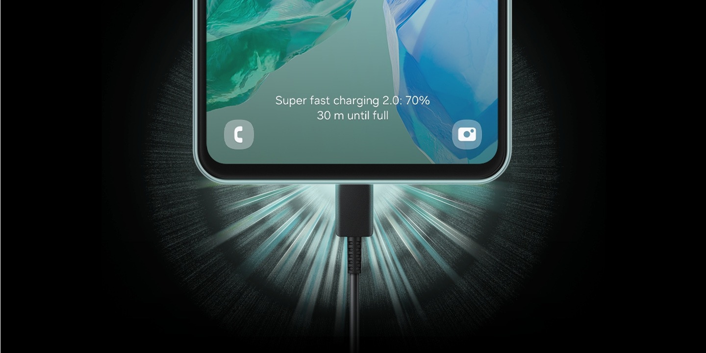 Βυθιστείτε στα χρώματα και τις λεπτομέρειες με την οθόνη 6,7 ιντσών FHD+ Super AMOLED+ του Galaxy M55 5G με εξαιρετικά λεπτά πλαίσια, ρυθμό ανανέωσης έως 120Hz και φωτεινότητα 1000 nits για καθαρή προβολή ακόμα και κάτω από άμεσο ηλιακό φως.