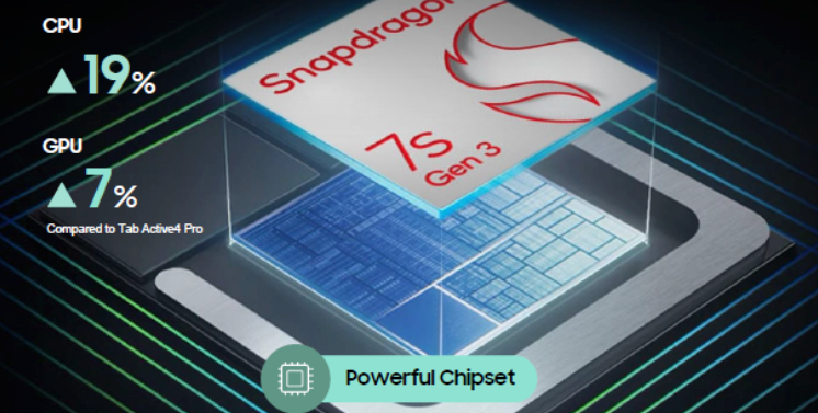 Το Galaxy Tab Active5 Pro συνδυάζει ανθεκτικότητα με υψηλή απόδοση, προσφέροντάς σου σιγουριά σε κάθε χρήση. Εξοπλισμένο με τον επεξεργαστή Snapdragon 7s Gen 3, προσφέρει σημαντικά βελτιωμένες επιδόσεις σε single core, multi core και γραφικά (GPU), ώστε να ανταποκρίνεται άμεσα και αποτελεσματικά σε όλες τις απαιτητικές επαγγελματικές εφαρμογές σου.