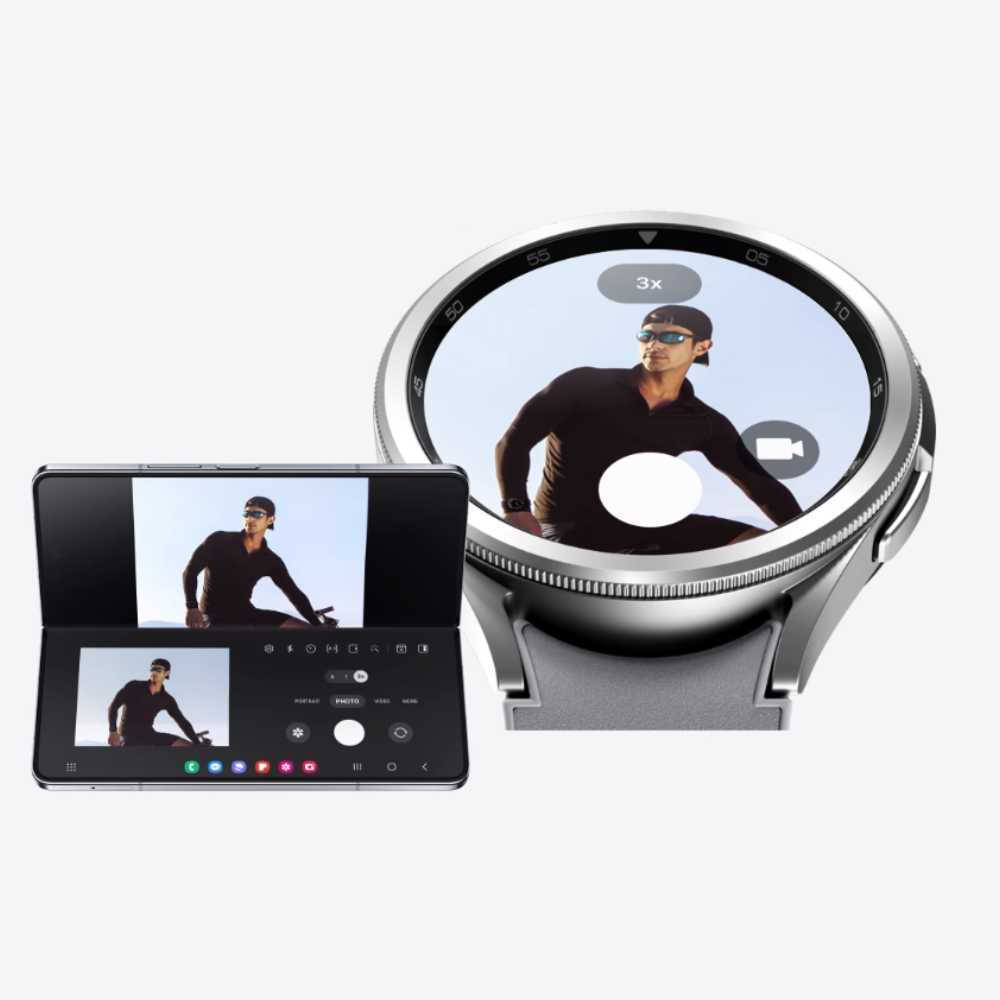 Συνδέστε το smartwatch σας με το Galaxy Z Fold για να καταγράψετε τον fit εαυτό σας από κοντά ή από απόσταση. Η λειτουργία Flex του Galaxy Z Fold και το Camera Controller σας επιτρέπουν να αλλάζετε εύκολα μεταξύ των λειτουργιών φωτογραφίας και βίντεο ή της μεγέθυνσης και σμίκρυνσης, όλα από την άνεση του καρπού σας. Έπειτα, πατήστε το κλείστρο στο smartwatch σας για να τραβήξετε μια φωτογραφία
