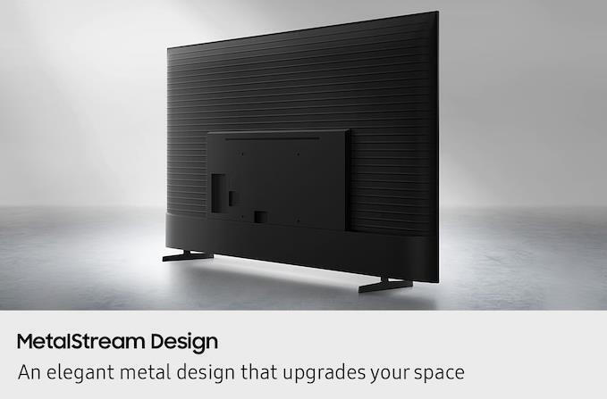 Κομψός μεταλλικός σχεδιασμός που ταιριάζει σε κάθε χώρο. Με έμπνευση από τον σχεδιασμό αεροσκαφών, η τηλεόραση διαθέτει ένα εκλεπτυσμένο μεταλλικό πλαίσιο. Χρησιμοποιείται μόνο ένα φύλλο μετάλλου για το λεπτό πλαίσιο, εξασφαλίζοντας μια πραγματικά καθηλωτική εμπειρία.