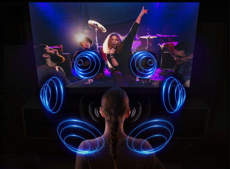 Απολαύστε τρισδιάστατο ήχο που σας βάζει στη μέση της δράσης χάρη στα ενσωματωμένα ηχεία 4.2.2ch και τον ήχο που τροφοδοτείται με AI και ακολουθεί τη δράση.