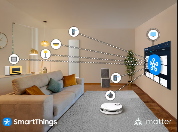 Χάρη στο ενσωματωμένο SmartThings hub στην τηλεόρασή σας, μπορείτε να συνδέετε απρόσκοπτα και να ελέγχετε τις συμβατές με τα πρότυπα Matter και HCA έξυπνες συσκευές σας, χωρίς να χρειάζεστε πρόσθετη συσκευή.