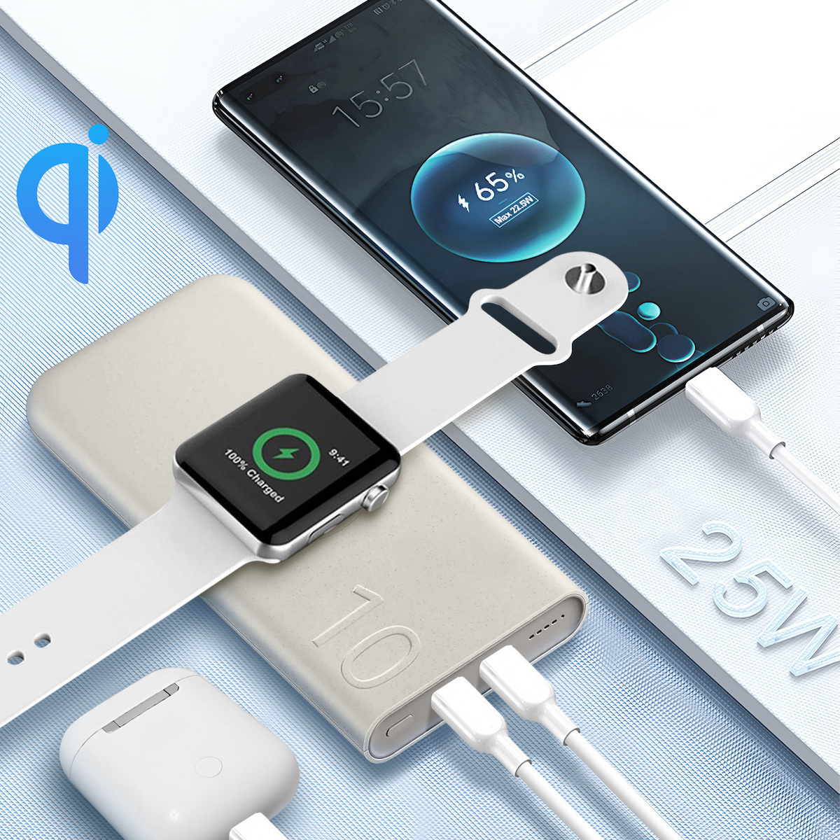 - Επιτρέπει την άνετη επαγωγική φόρτιση χωρίς την ανάγκη χρήσης καλωδίων. Η τεχνολογία επαγωγής σημαίνει ότι χρειάζεται απλώς να τοποθετήσετε τη συσκευή στο power bank για να ξεκινήσει η φόρτιση.