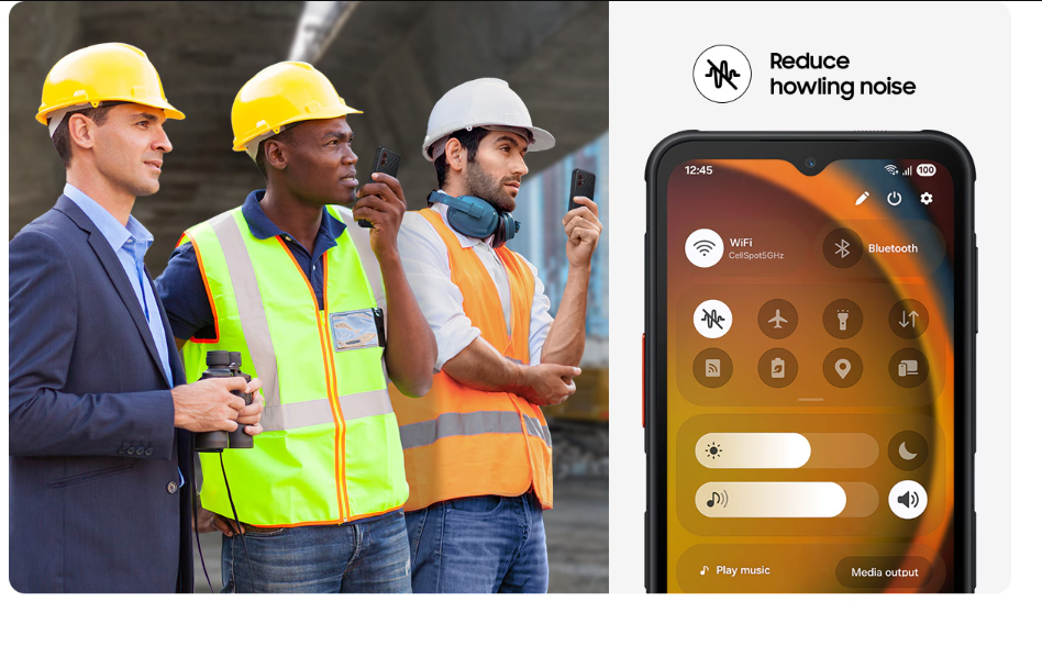 Στα σημαντικά περιβάλλοντα, όπως σε χώρους απόκρισης έκτακτης ανάγκης ή βιομηχανικούς χώρους, η παρουσία πολλών κοντινών συσκευών μπορεί να προκαλέσει διακοπές στον ήχο. Η τεχνολογία anti-feedback του Galaxy XCover7 Pro μειώνει ενεργά τις παρεμβολές, υποστηρίζει σταθερή επικοινωνία push-to-talk μέσω εφαρμογών τρίτων κατασκευαστών, επιτρέποντας στις ομάδες να παραμένουν συγκεντρωμένες και χωρίς διακοπές. Σε συνδυασμό με τα συντονισμένα, στερεοφωνικά ηχεία, η συσκευή προσφέρει αξιόπιστο και υψηλής ποιότητας ήχο, ακόμη και σε θορυβώδη περιβάλλοντα εργασίας.