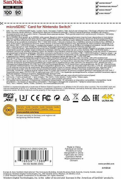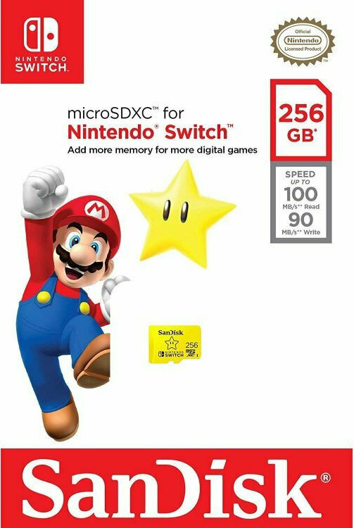 Κάρτα microSDXC ειδικά σχεδιασμένη για το Nintendo Switch με χώρο 256GB και ταχύτητα ανάγνωσης 100MB/s.