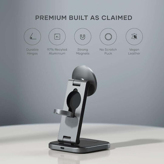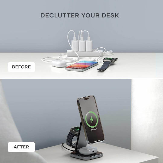 - Μαγνητική υποστήριξη: Χάρη στην τεχνολογία MagSafe, ο σταθμός παρέχει ασφαλή και σταθερή υποστήριξη για το iPhone σας, επιτρέποντάς σας να χρησιμοποιείτε το τηλέφωνό σας σε κατακόρυφη θέση, ακόμα και κατά τη διάρκεια της φόρτισης. Η μαγνητική σύνδεση είναι επίσης ασφαλής και εύχρηστη, διευκολύνοντας τη χρήση.