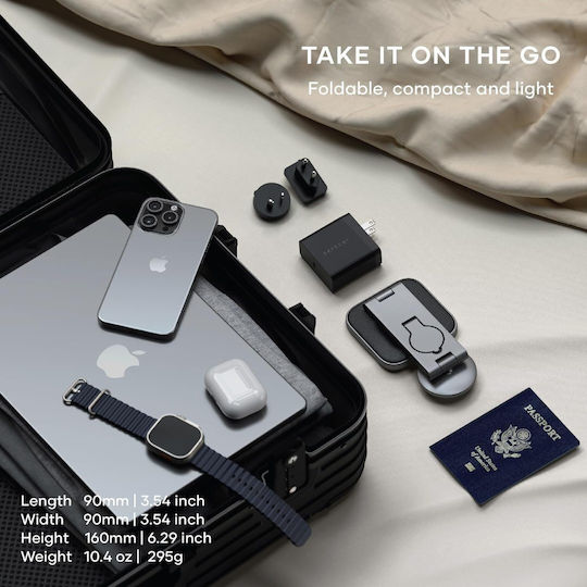 - Συμπαγής και αναδιπλούμενος σχεδιασμός: Ο MagSafe 3-in-1 φορτιστής διαθέτει μοντέρνο, μινιμαλιστικό σχεδιασμό που ταιριάζει τέλεια σε κάθε εσωτερικό χώρο. Ο αναδιπλούμενος σχεδιασμός επιτρέπει τη εύκολη μεταφορά και αποθήκευση της συσκευής, καθιστώντας την ιδανική για οικιακή χρήση και ταξίδια.