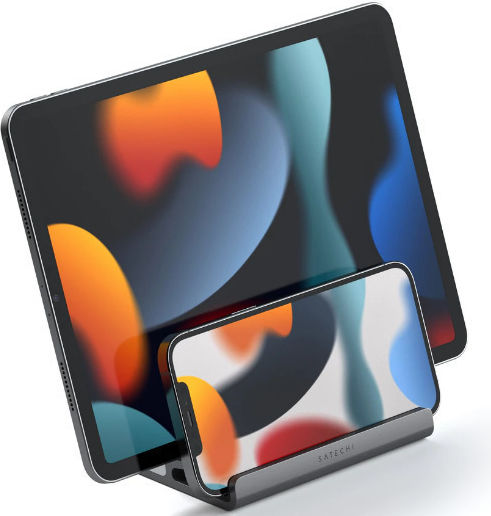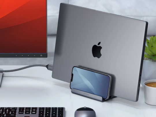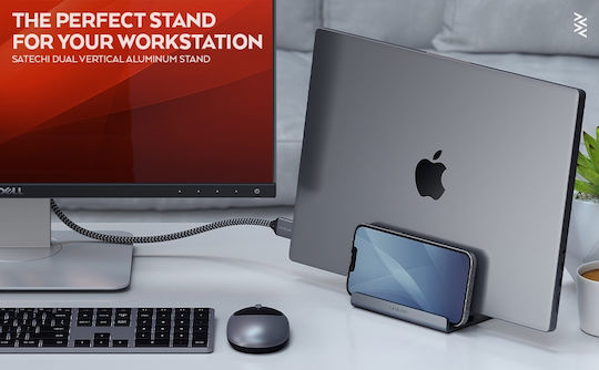 Διατηρήστε το γραφείο σας τακτοποιημένο και τις συσκευές σας εύκολα προσβάσιμες με το Satechi Dual Vertical Stand για φορητούς υπολογιστές και tablet.