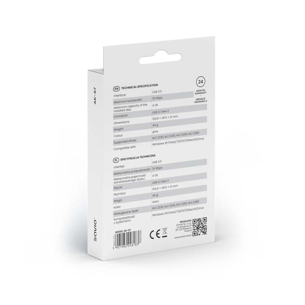 Savio Θήκη για Σκληρό Δίσκο M.2 SATA III NVME με σύνδεση Type-C σε Γκρι χρώμα
