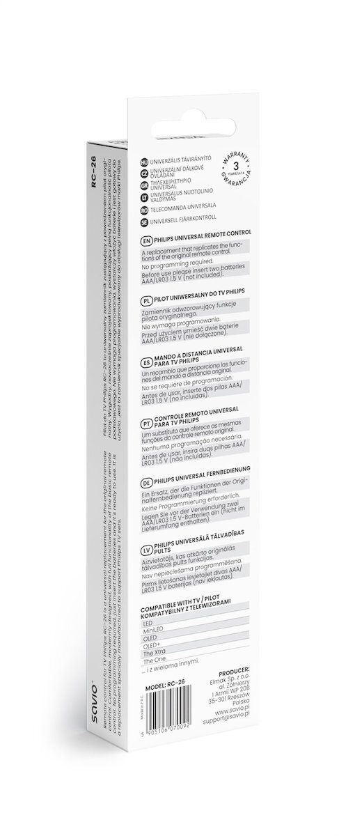 Savio Συμβατό Τηλεχειριστήριο για Τηλεοράσεις Philips 5905106070092