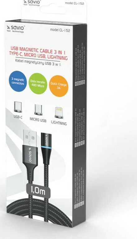 Savio Braided USB to Lightning / Type-C / micro USB Cable Ασημί 1m (CL-152)