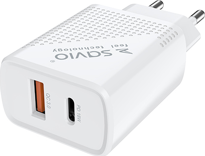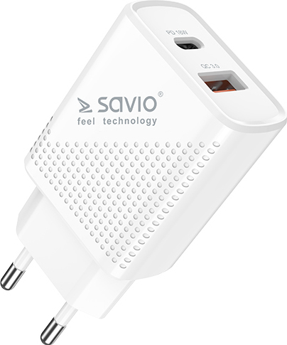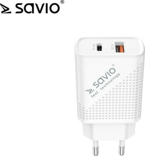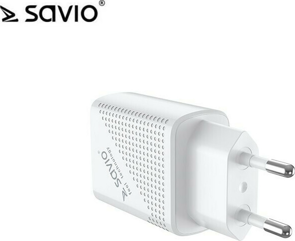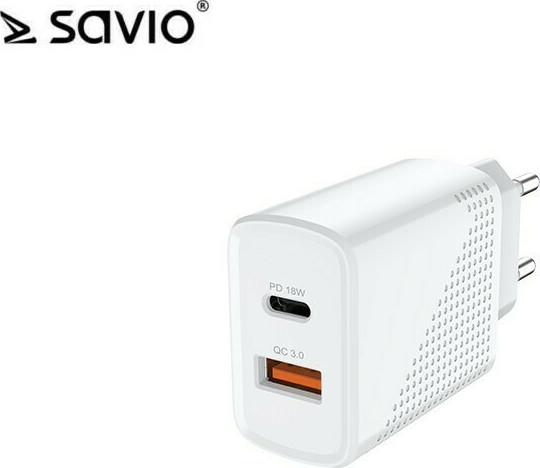Φορτιστής Savio LA-04 με USB Type A & Type C, υποστηρίζει γρήγορη φόρτιση Power Delivery 3.0. Ιδανικός για εσωτερική χρήση.