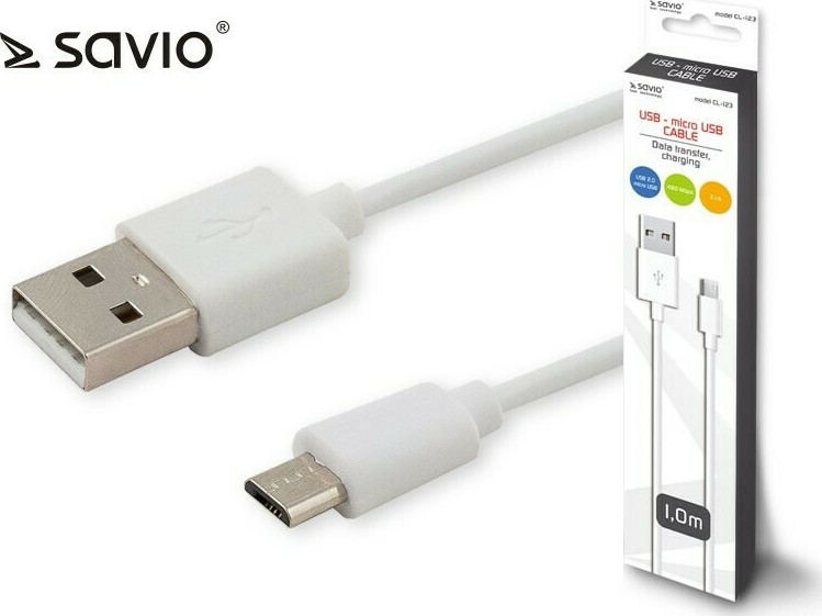 Savio Regular USB 2.0 to micro USB Cable Λευκό 1m (CL-123)