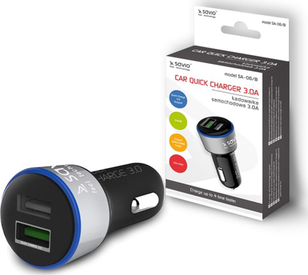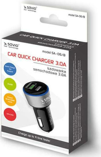 Savio SA-06 Φορτιστής Αυτοκινήτου με Θύρες 2xUSB-A