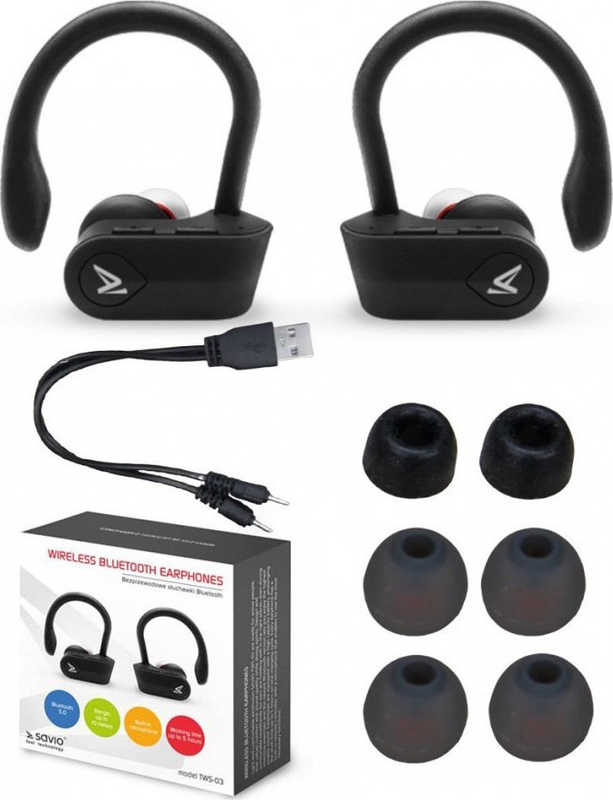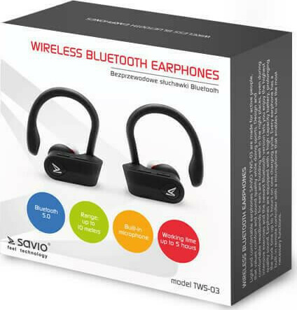 Tα ελαφριά και άνετα ακουστικά SAVIO TWS-03 έχουν σχεδιαστεί για δραστήριους ανθρώπους που εκτιμούν την άνεση και την ποιότητα του ήχου κατά τη διάρκεια της άθλησης. Ο σχεδιασμός και οι άνετες ζώνες αυτιών κρατούν καλά στα σωστά σημεία, ακόμη και κατά τη διάρκεια έντονης προπόνησης, και η τελευταία έκδοση Bluetooth σας επιτρέπει να απολαμβάνετε ήχο υψηλής ποιότητας. Τα ακουστικά είναι εξοπλισμένα με μπαταρία υψηλής χωρητικότητας που επεκτείνει το χρόνο λειτουργίας σε 5 ώρες σε έναν κύκλο φόρτισης. Κάθε ακουστικό διαθέτει ενσωματωμένο τηλεχειριστήριο με μικρόφωνο που σας επιτρέπει να χρησιμοποιείτε τις πιο απαραίτητες λειτουργίες.