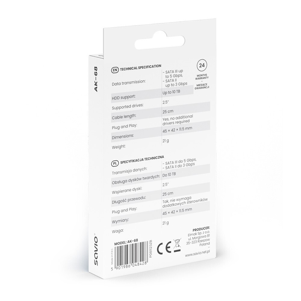 Savio Usb-a 3.1 Gen 1 (m) – Sata (f) Αντάπτορας USB to SATA Μαύρο