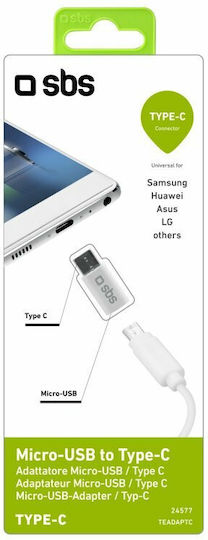 SBS Μετατροπέας USB-C male σε micro USB female Λευκό 1τμχ TEADAPTC