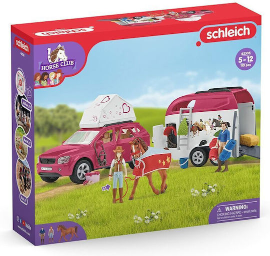 Schleich 42535 Περιπέτεια με αυτοκίνητο και τρέιλερ. Η Hannah και ο πατέρας της έχουν μεγάλες περιπέτειες με το αυτοκίνητο και το τρέιλερ αλόγων από το Schleich ® Horse Club! Διάφορες λειτουργίες προσφέρουν πολλές δυνατότητες διασκέδασης.