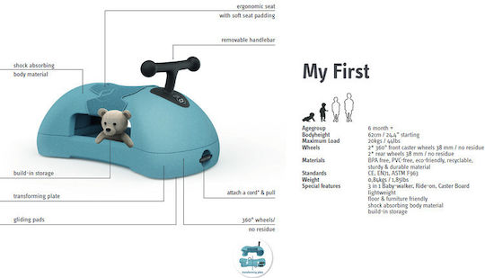 Το My First είναι κατάλληλο για μωρά από 6 μηνών με ελαφριά κατασκευή από ειδικό υλικό που απορροφά τους κραδασμούς, προσφέροντας ασφάλεια και ανθεκτικότητα. Ιδανικό για το μωρό αλλά και για τα έπιπλα του σπιτιού.