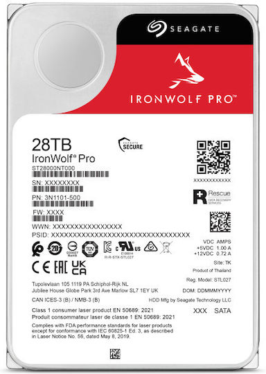 Seagate Ironwolf Pro 28TB HDD Σκληρός Δίσκος 3.5″ SATA III 7200rpm με 256MB Cache για NAS ST28000NT000