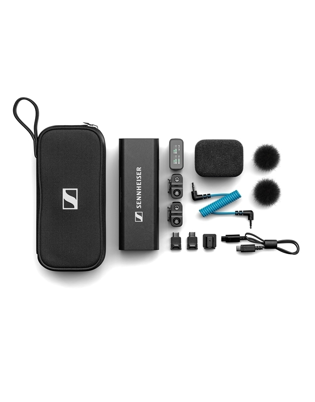 • Όλα σε ένα: περιλαμβάνει δέκτη 2 καναλιών 2,4 GHz, 2 μικρόφωνα με κλιπ, αξεσουάρ, μπάρα φόρτισης και θήκη μεταφοράς