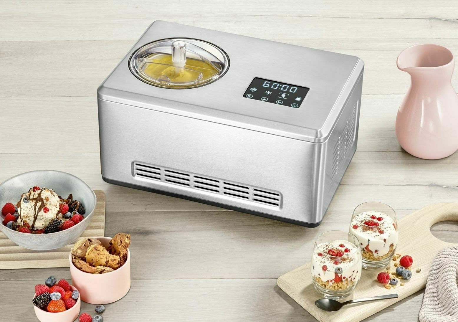 - Για την παρασκευή παγωτού, sorbets, frozen yoghurt καθώς και κλασσικό γιαούρτι σε λιγότερο από 30 λεπτά. Δε χρειάζεται προηγούμενη τοποθέτηση του μπολ στο ψυγείο.