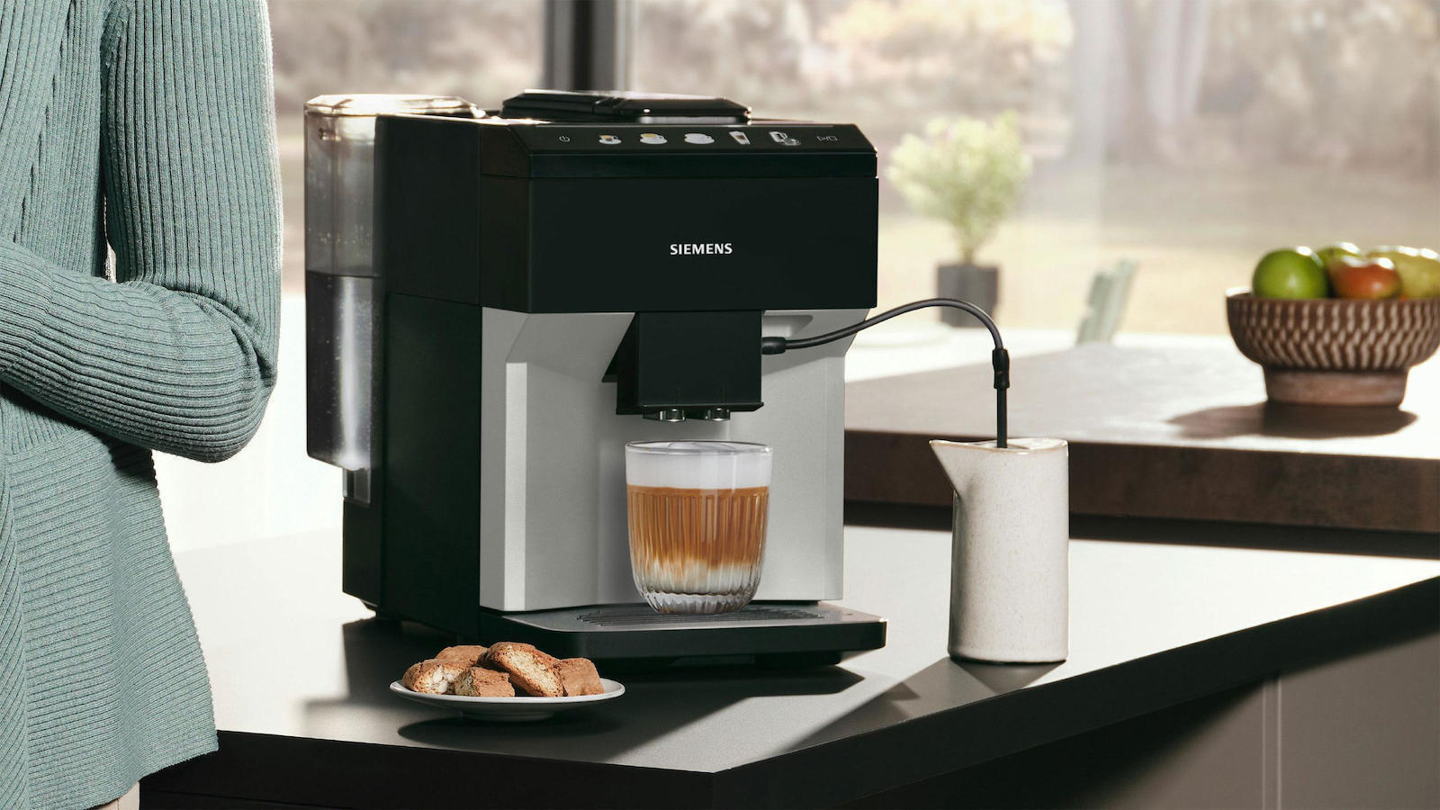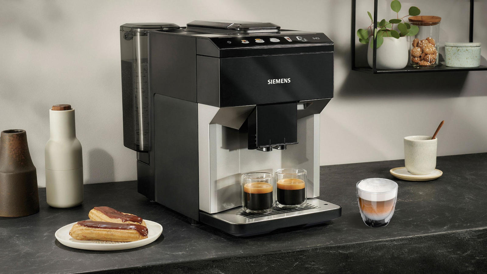 Η αυτόματη μηχανή espresso EQ500 της Siemens συνδυάζει ευκολία και ποιότητα στην παρασκευή καφέ. Κατασκευασμένη για να εξυπηρετεί τις ανάγκες των απαιτητικών φίλων του espresso, διαθέτει ενσωματωμένο μύλο άλεσης, που αλέθει τους κόκκους καφέ κατ’ εντολή σας, εξασφαλίζοντας φρεσκάδα και γεύση σε κάθε κούπα. Με απλές ρυθμίσεις, έχετε την απόλυτη εμπειρία του espresso, χάρη στην ισχυρή της απόδοση. Το δοχείο νερού, με χωρητικότητα 1.9 λίτρων, σας επιτρέπει να απολαμβάνετε έως και 31 φλυτζάνια καφέ πριν χρειαστεί να το γεμίσετε, ιδανικό για καθημερινή χρήση.