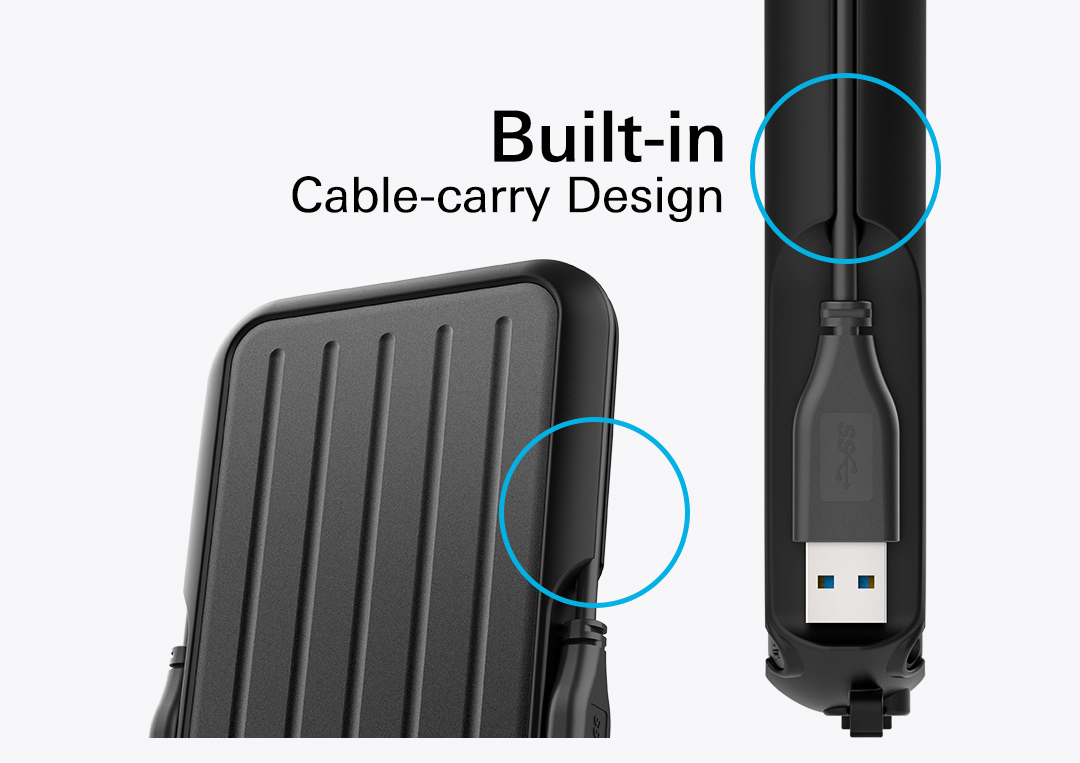 Με τον πλήρη προστατευτικό λαστιχένιο προφυλακτήρα του, την αντοχή στο νερό σε επίπεδο IPX4 και τη στρατιωτική σχεδίαση ανθεκτική στους κραδασμούς, αυτός ο φορητός σκληρός δίσκος είναι έτοιμος να αποτινάξει εύκολα σταγόνες, κραδασμούς, βροχή και σκόνη.