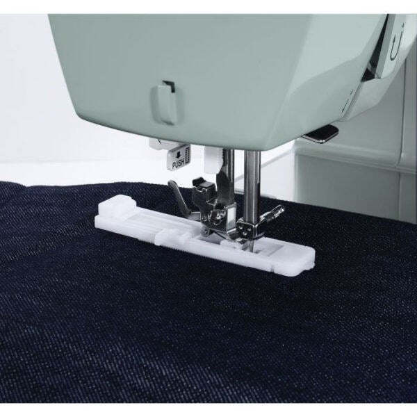 - Ευρύ άνοιγμα βελονιών για ράψιμο πάνω σε παχιά υφάσματα.