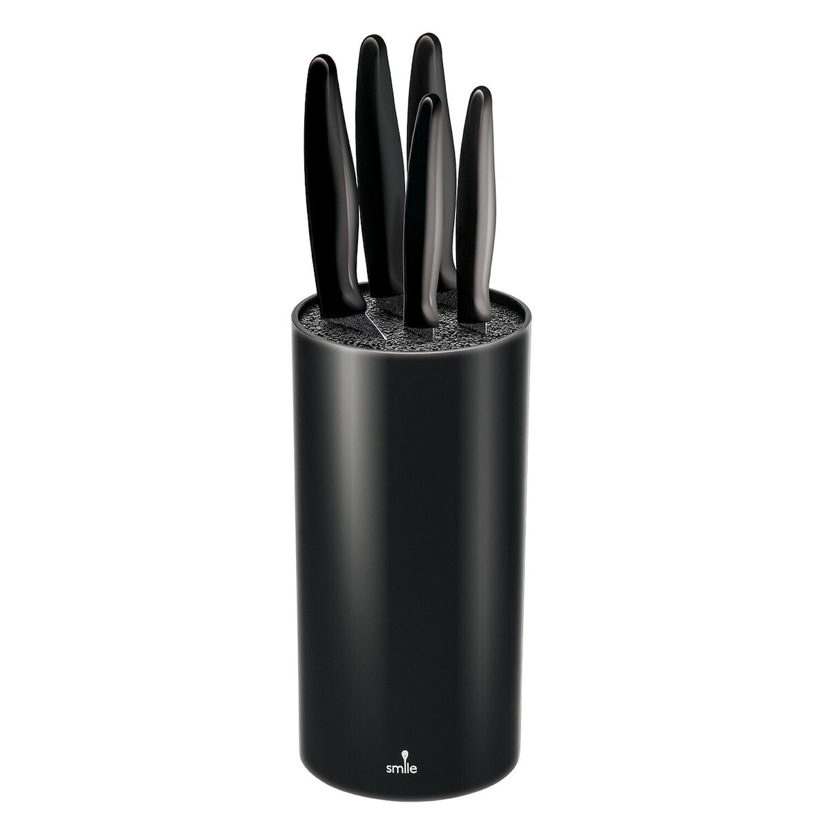 Σετ μαχαιριών με λεπίδα κατασκευασμένη από ανοξείδωτο ατσάλι και με αντικολλητικές ιδιότητες, ώστε να διατηρούν την κόψη τους για αρκετό καιρό. Έχουν εργονομική και αντιολισθητική λαβή για ακρίβεια στις κοπές και μέγιστη χρήση όλου του μήκους της λεπίδας. Περιλαμβάνεται βάση στήριξης και αποθήκευσης ώστε να τα διατηρείτε πάντα οργανωμένα.