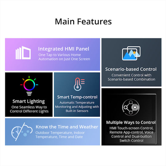 Το NSPanel προσφέρει στους χρήστες διάφορους τρόπους ελέγχου των οικιακών συσκευών: μέσω αφής, φωνής ή εφαρμογής για κινητά. Αυτή η ευελιξία επιτρέπει την προσαρμογή της μεθόδου ελέγχου στις ατομικές ανάγκες και προτιμήσεις του χρήστη. Ως αποτέλεσμα, είτε βρίσκεστε στο σπίτι είτε εκτός, μπορείτε να έχετε πάντα τον πλήρη έλεγχο του περιβάλλοντός σας.