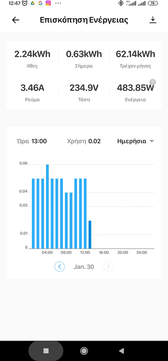 - Η εφαρμογή eWeLink παρέχει ιστορικό χρήσης ηλεκτρικής ενέργειας 6 μηνών, το οποίο μπορείτε να εξάγετε στον αποθηκευτικό χώρο του τηλεφώνου σας