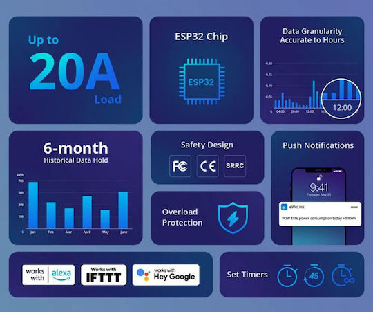 - Λειτουργεί σαν συσκευή παρακολούθησης ισχύος, η οποία σας επιτρέπει να παρακολουθείτε την ακριβή τάση και ισχύ σε πραγματικό χρόνο μέσω της εφαρμογή eWeLink για smartphone
