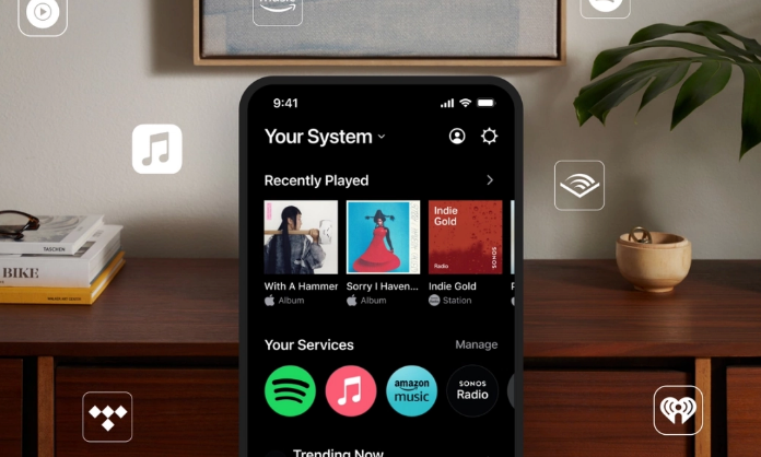 Η εφαρμογή Sonos συγκεντρώνει όλο το περιεχόμενο και τις ρυθμίσεις σας σε ένα μέρος για εύκολο έλεγχο από οποιοδήποτε δωμάτιο.