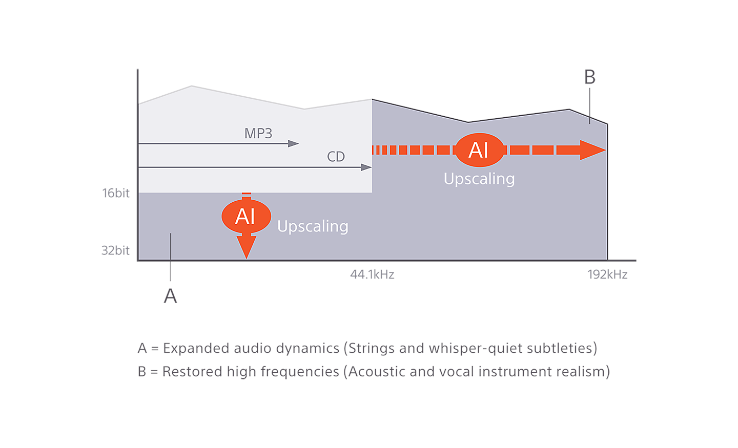 Χρησιμοποιώντας Edge-AI (τεχνητή νοημοσύνη), το DSEE Ultimate (Digital Sound Enhancement Engine) αναβαθμίζει συμπιεσμένα ψηφιακά αρχεία μουσικής σε πραγματικό χρόνο. Αναγνωρίζοντας προσαρμοστικά την ενορχήστρωση, τα μουσικά είδη και τα επιμέρους στοιχεία κάθε τραγουδιού, όπως τα φωνητικά ή τα ιντερλούδια, μπορεί να αποκαταστήσει τις ακουστικές λεπτές αποχρώσεις και το δυναμικό εύρος, καθώς και τη σαφήνεια και την παρουσία των υψηλών συχνοτήτων, για μια πιο πλούσια και ολοκληρωμένη εμπειρία ακρόασης.*