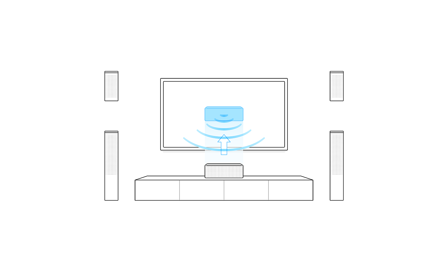 Η έξυπνη επεξεργασία ήχου επιτρέπει στο AN1000 να επανατοποθετεί ουσιαστικά τον ήχο ενός συνδυασμού κεντρικού ηχείου με μπροστινά ηχεία ύψους, ακόμη και ενός που είναι τοποθετημένο κάτω από την τηλεόραση ή τον προβολέα σας. Αυτό ευθυγραμμίζει τους διαλόγους και τα εφέ με την πηγή τους στην οθόνη για πιο φυσική και συναρπαστική προβολή.