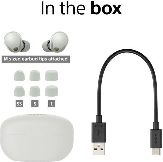 Sony WF-1000XM5 In-ear Bluetooth Handsfree Ακουστικά με Θήκη Φόρτισης Ασημί