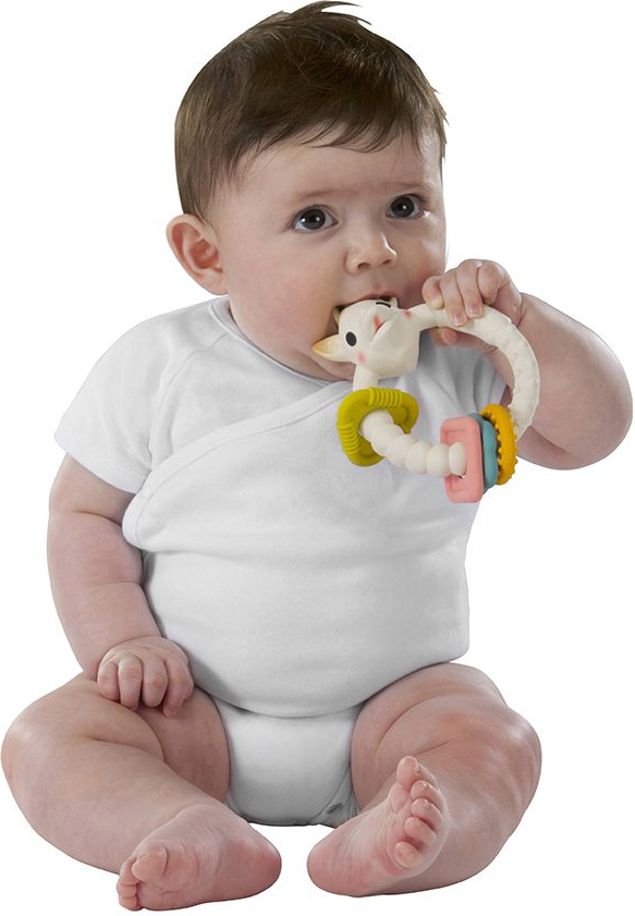 Όταν διαρκεί αυτή η περίοδος, το μωρό έχει την τάση να μασάει τα πάντα! Η Σόφι η καμηλοπάρδαλη προσφέρει μια λύση με το πολύχρωμο δαχτυλίδι οδοντοφυΐας φτιαγμένο από 100% φυσικό καουτσούκ.