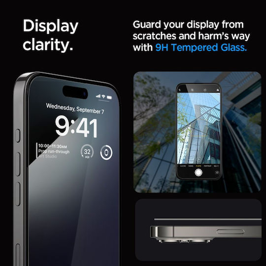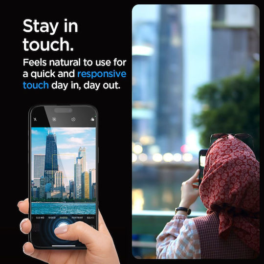 To γυαλί Spigen GLAS.tR ez Fit διατηρεί την ευκρίνεια της οθόνης του iPhone 15 Pro, αφήνοντας ανεπηρέαστη την ευαισθησία αφής ενώ παράλληλα προστατεύει από γρατσουνιές, χτυπήματα και πτώσεις. Με την επιφάνεια σκληρότητας και το κορυφαίας ποιότητας γυαλί, ακόμη και αιχμηρά αντικείμενα, όπως μαχαίρια και κλειδιά δεν μπορούν να γραντσουνίσουν το Spigen GLAS.tR ez Fit.