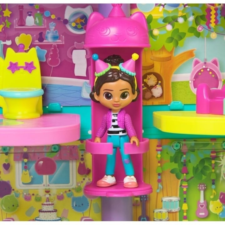 Ανακαλύψτε τον μαγευτικό κόσμο της Γκαμπί και του Σπιτιού της, ένα αριστούργημα ύψους 60 εκατοστών με θέμα τα ουράνια τόξα. Ελευθερώστε τη δημιουργικότητά σας με την φιγούρα Γκαμπί Γκέρλ ύψους 8,8 εκατοστών, τα έπιπλα του σπιτιού και 10 αξεσουάρ, συμπεριλαμβανομένης μιας τουαλέτας με θέμα γάτα, ενός DJ booth/πιάνου και πολλά άλλα. Παρουσιάστε μια παράσταση στο DJ booth και χρησιμοποιήστε τον Cat-A-Vator για να αποκτήσετε πρόσβαση σε έξι δωμάτια και μια παιδική περιοχή στην ταράτσα.