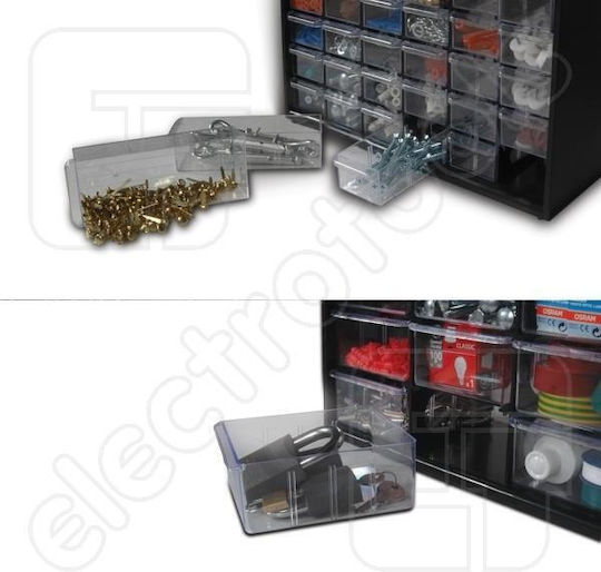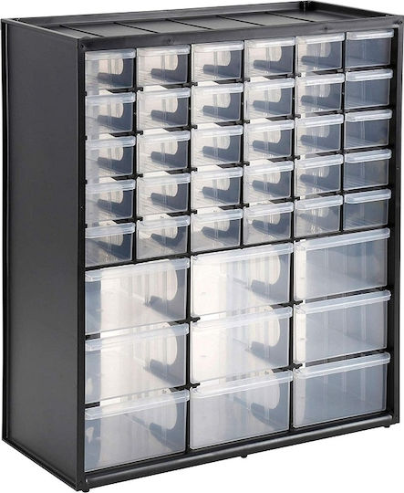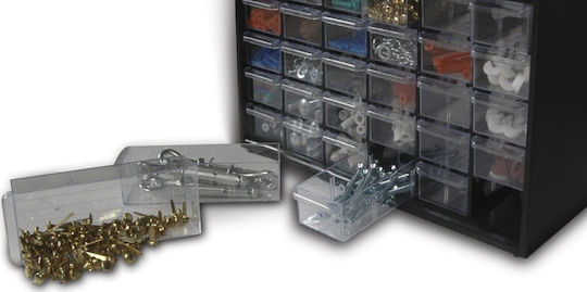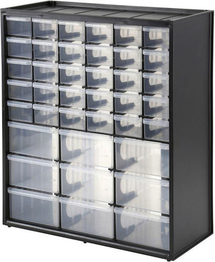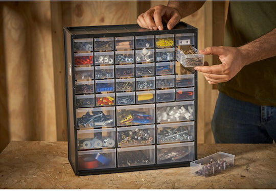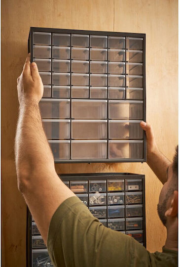 Κουτί αποθήκευσης πολλαπλών χρήσεων με 30 μικρά και 9 μεγάλα συρτάρια. Κατάλληλο και για επιτοίχιο κρέμασμα. Μπορεί να στιβαχθεί το ένα πάνω στο άλλο για να δημιουργηθεί ένα πλήρες σύστημα αποθήκευσης.