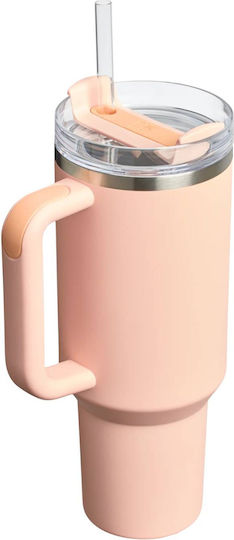 Stanley Flowstate Handled Tumbler Θερμός Ανοξείδωτο BPA Free 1.18lt Orange Cream με Καλαμάκι και Λαβή 10-10825-423