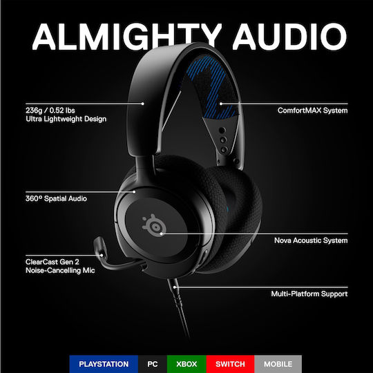 SteelSeries Arctis Nova 1P Over Ear Gaming Headset με σύνδεση 3.5mm