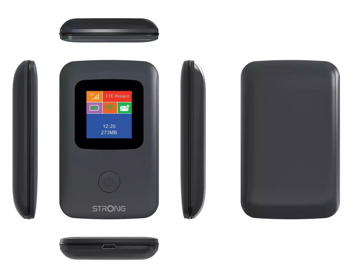 Το φορητό hotspot από την STRONG σας επιτρέπει να μοιράζεστε μέσω κάρτας SIM, ασύρματο δίκτυο κινητής τηλεφωνίας 4G σε έως 10 συσκευές, με ταχύτητα έως 150 Mbps.