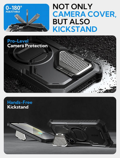 Προστασία στρατιωτικού βαθμού: Δοκιμή πτώσης 20 ποδιών με προστασία ολόκληρου του σώματος 360°, ενισχυμένη με τεχνολογία αερόσακου τεσσάρων γωνιών για απορρόφηση κραδασμών. Τα ανυψωμένα πλαίσια και το κάλυμμα του φακού της κάμερας παρέχουν επιπλέον προστασία από τυχαίες γρατσουνιές.